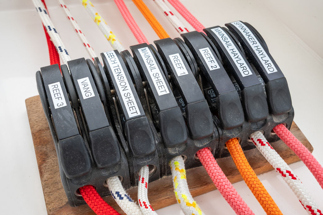 3rd reef control in cockpit (Garhauer block and 8-line deck organiser – new spinlock triple cam (2025)