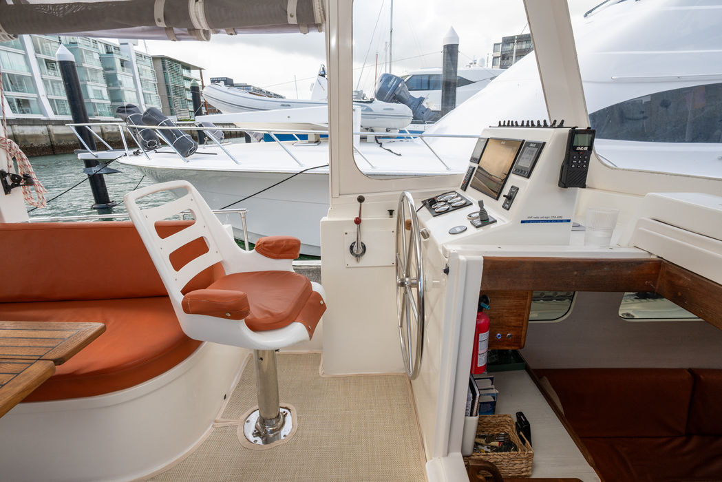 Raised center cockpit providing 360° view while operating and enjoying sundowns