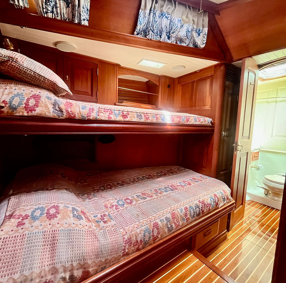 Built for a very knowledgeable sailing family she has been thoughtfully appointed in classic style with all the amenities (plus more) and provides the wonderful sailing and cruising experience for which Hinckley's are famous. SEE ADLER is a beautiful Hinckley Southwester 70 centre cockpit enclosed pilothouse ketch with teak decks and hydrologic stowaway main and mizzen mast. Her first-class varnished raised panel cherry interior with all the amenities, sleeps 8 in comfort and features salon area in the pilothouse as well as below decks. Built for a very knowledgeable sailing family she has been thoughtfully appointed in classic style with all the amenities (plus more) and provides the wonderful sailing and cruising experience for which Hinckleys are famous.
